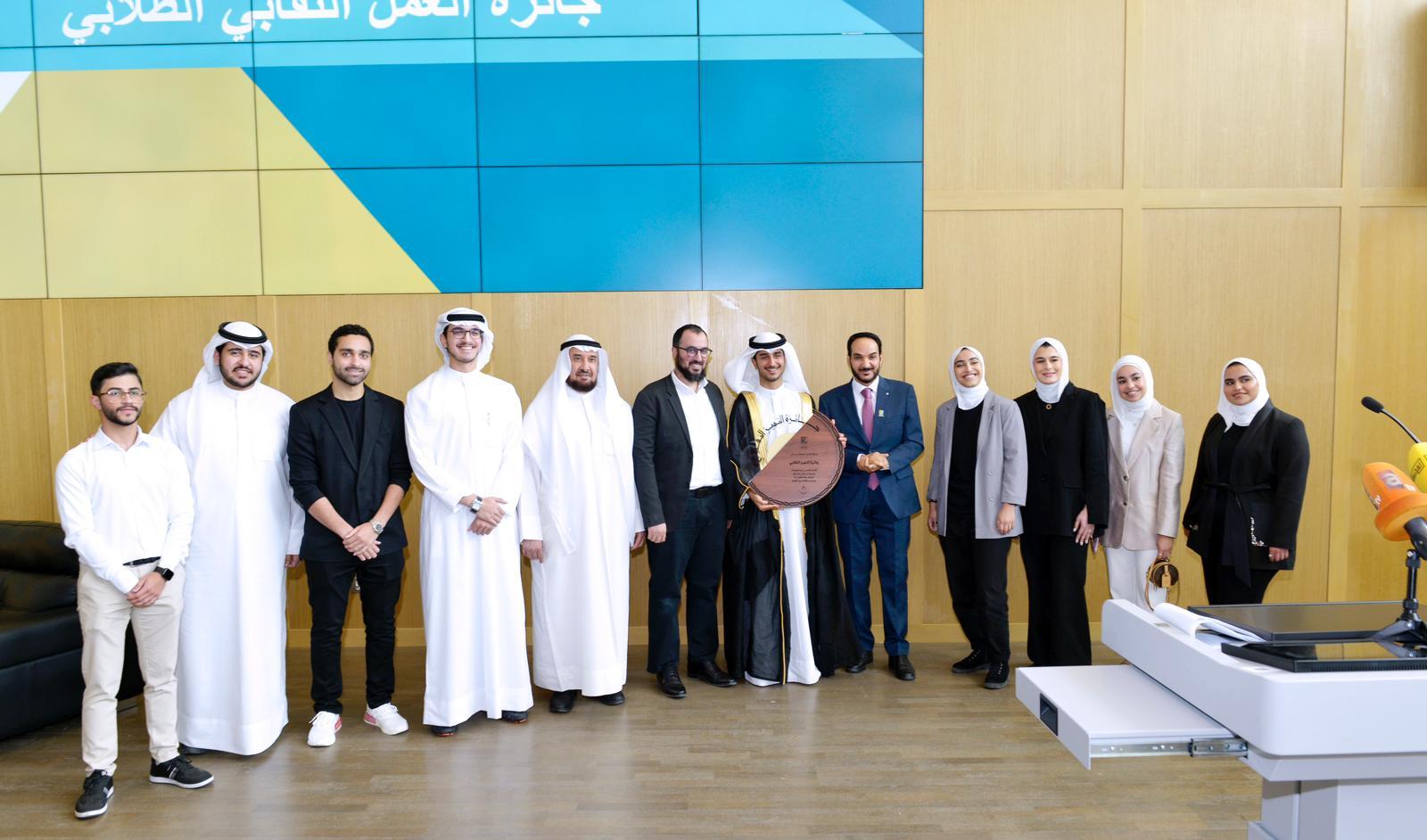 وتحدث رئيس القسم النقابي عبدالله المطيري عن فكرة جائزة التميز النقابي التي تهدف إلى الارتقاء بجودة الأنشطة التي تقوم بها الجمعيات العلمية، كما تحدث عن الأهداف والشروط والمعايير وأعلن عن فوز كلية الطب بجائزة التميز النقابي، وقد حصلت جمعية الحقوق على جائزة التميز في معيار الانشطة الثقافية والفنية، وجمعية الشريعة على جائزة معيار إقامة الندوات والمحاضرات وجمعية الصيدلة على جائزة معيار النشرات والمجلات وجمعية الطب على جائزة معيار الرحلات الداخلية والخارجية وجمعية الطب المساعد على جائزة معيار الأعمال التطوعية.