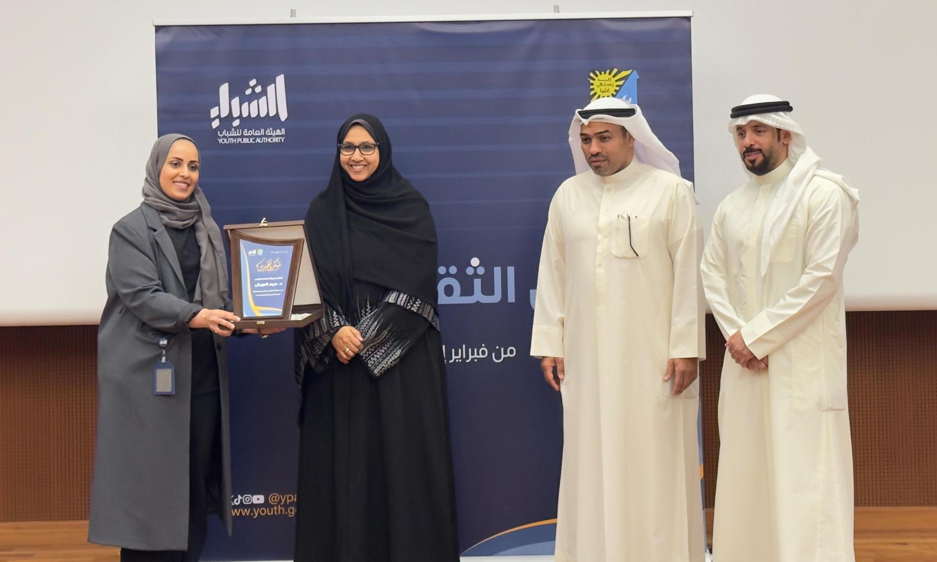 وفي ختام المحاضرة، تم تقديم شهادة تقدير ودرع تكريمي للدكتورة مريم العويش تقديرًا لجهودها المتميزة في نشر الوعي الديني وتعزيز القيم الإسلامية بين الطلبة، معربين عن خالص الامتنان لمشاركتها الفاعلة، ومتمنين لها دوام التوفيق والنجاح في مسيرتها العلمية والدعوية.