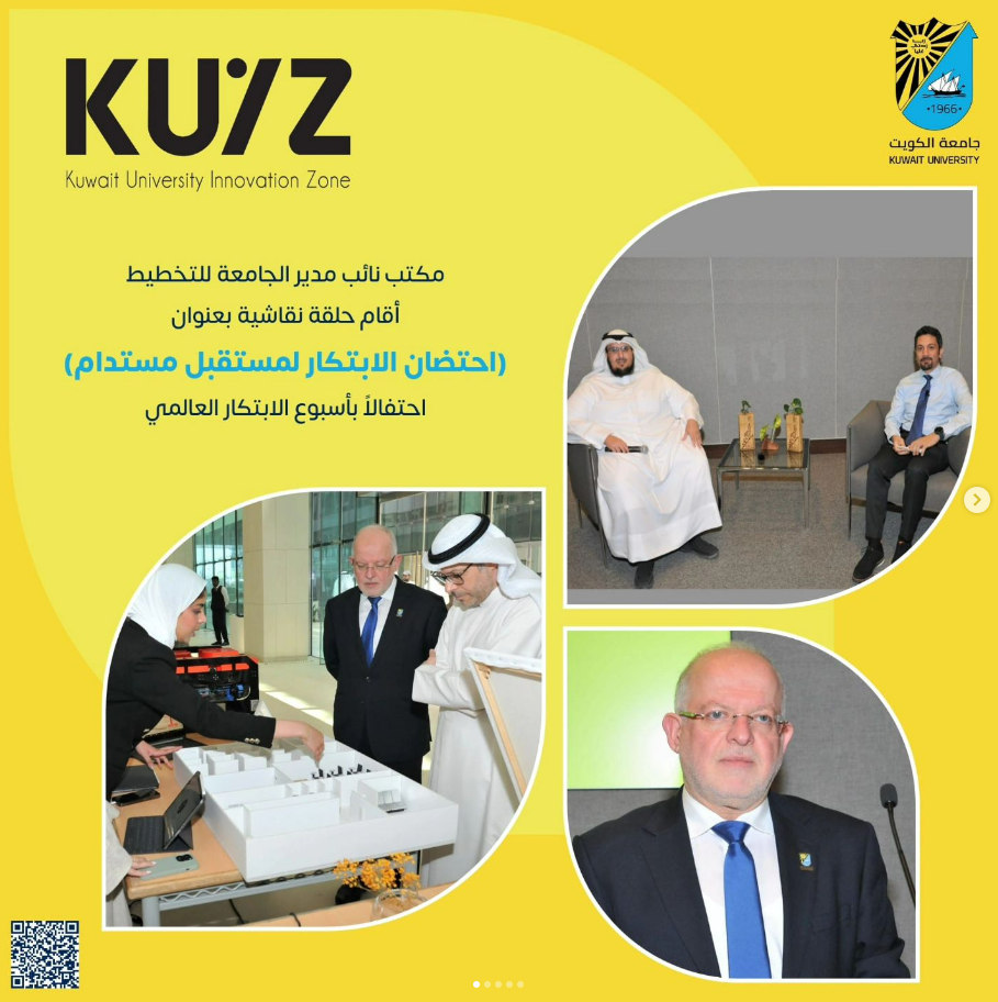 افتتح الحلقة النقاشية مساعد نائب مدير الجامعة للتطوير المؤسسي د. هيثم لبابيدي حيث أكد التزام جامعة الكويت بتبني رؤية إستراتيجية لتعزيز دور الابتكار، بما يتماشى مع ركائز الخطة التنموية لدولة الكويت وأهداف التنمية المستدامة، وقال "نسعى لخلق ثقافة متجذرة في الابتكار داخل المنظومة الجامعية، ما يجعلها بيئة محفزة ومنتجة للمشاريع الابتكارية والتي تقودنا نحو الريادة والتطوير المستمر".