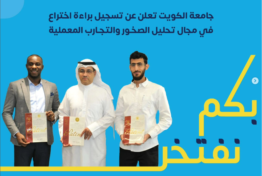 تحت رعاية وحضور مدير جامعة الكويت بالإنابة أ.د. مشاري الحربي أعلنت جامعة الكويت ممثلة بمكتب براءات الاختراع وحقوق الملكية الفكرية في قطاع الأبحاث عن تسجيل براءة اختراع جديدة في مجال تحليل الصخور والتجارب المعملية.