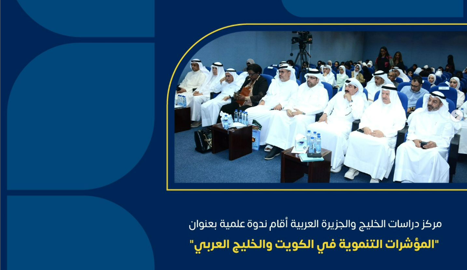 نظم مركز دراسات الخليج والجزيرة العربية بجامعة الكويت ندوة علمية تحت عنوان (المؤشرات التنموية في الكويت والخليج العربي)، بحضور القائم بأعمال نائب مدير الجامعة لقطاع الأبحاث وممثل مدير جامعة الكويت بالإنابة الأستاذ الدكتور عثمان حمود الخضر، والقائم بأعمال مدير مركز دراسات الخليج والجزيرة العربية الأستاذ الدكتور يعقوب يوسف الكندري، وذلك يوم الثلاثاء الموافق 30 أبريل 2024 في قاعة البنك الدولي بكلية العلوم الاجتماعية في الحرم الجامعي الشويخ.
