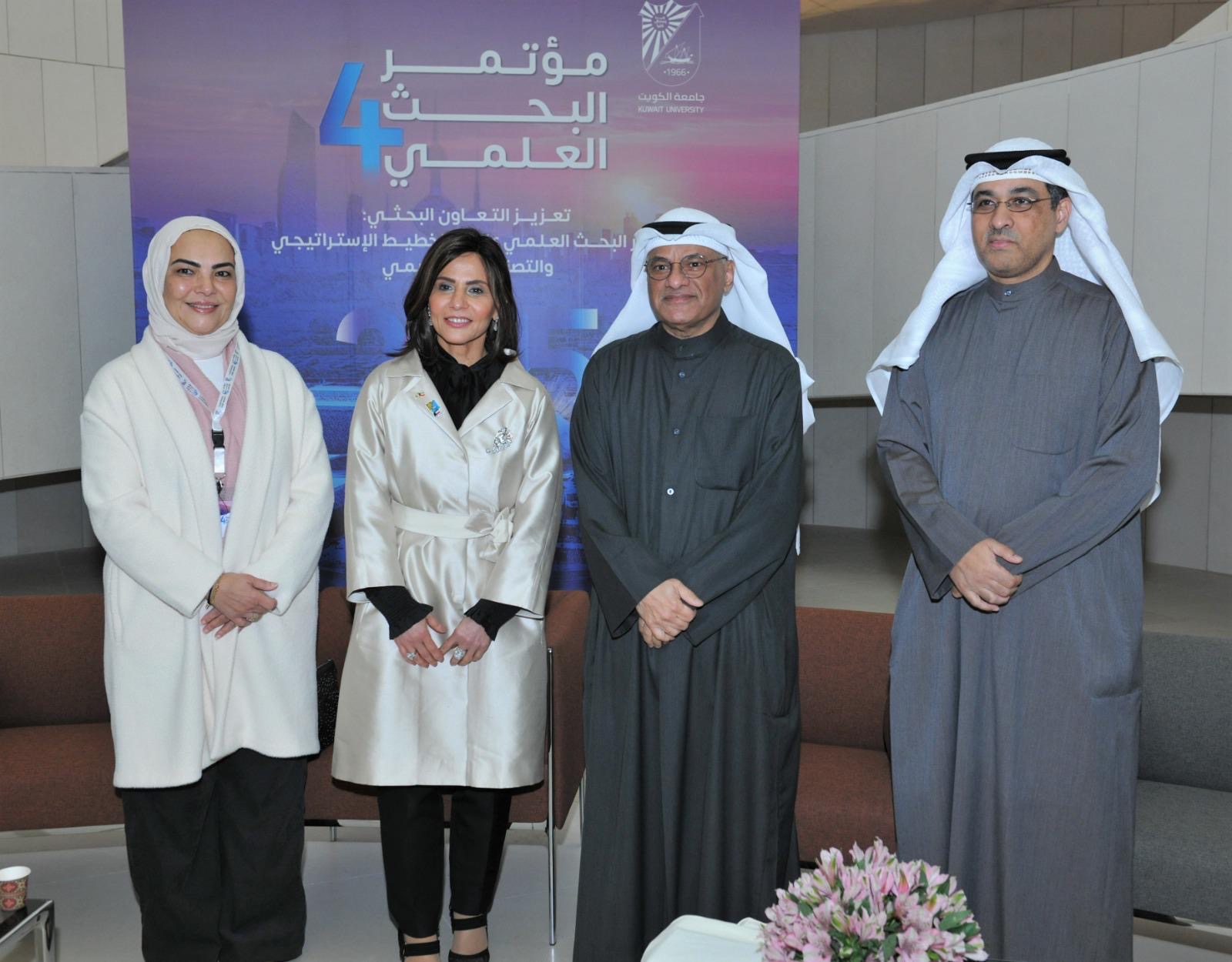 وأضافت أ.د. الميلم (يسعدني أن أتواجد معكم اليوم في مؤتمر البحث العلمي الرابع في مدينة صباح السالم الجامعية، هذا الصرح الأكاديمي الشامخ الذي كُلفت بإدارته بثقة سامية من حضرة صاحب السمو أمير البلاد الشيخ مشعل الأحمد الجابر الصباح حفظه الله ورعاه والقيادة الحكيمة، متطلعةً إلى تحقيق أهداف جامعة الكويت الإستراتيجية ومنها البحث العلمي، مؤكدة أن المؤتمر استقطب مجموعة مميزة من الضيوف ذوي الخبرة والتميز العلمي والأكاديمي ليشكل منصة هامة لتبادل الخبرات والاطلاع على أحدث التطورات في مجال البحث العلمي، وما يميز مؤتمر هذا العام أنه استلهم أهدافه من رؤية دولة الكويت 2035 سعيًا من القائمين عليه لتوحيد الجهود نحو تحقيقها وتجسيد حلم كويت جديدة إلى واقع ملموس ستجني ثماره أجيال هذا الوطن الغالي في المستقبل.