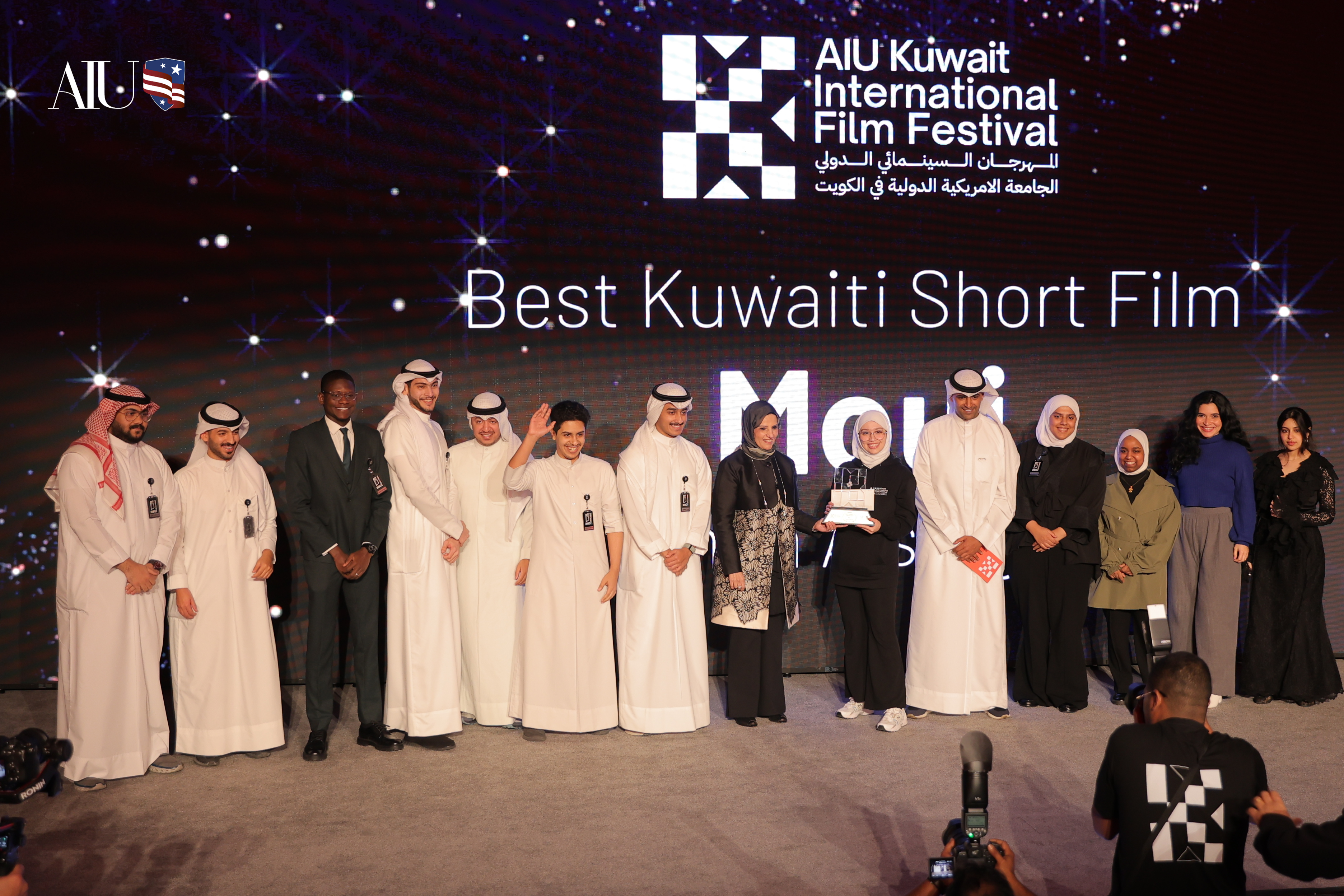 حصل فريق طلبة قسم الإعلام بكلية الآداب بجامعة الكويت على جائزة أفضل فيلم قصير في المهرجان السينمائي الدولي الثالث للأفلام الذي نظمته الجامعة الأمريكية الدولية AIU في الكويت، والذي احتفى بالمواهب الوطنية في مجال السينما وصناعة الأفلام، حيث شارك فيه أكثر من 150 فيلمًا محلياً وإقليمياً وعالمياً.