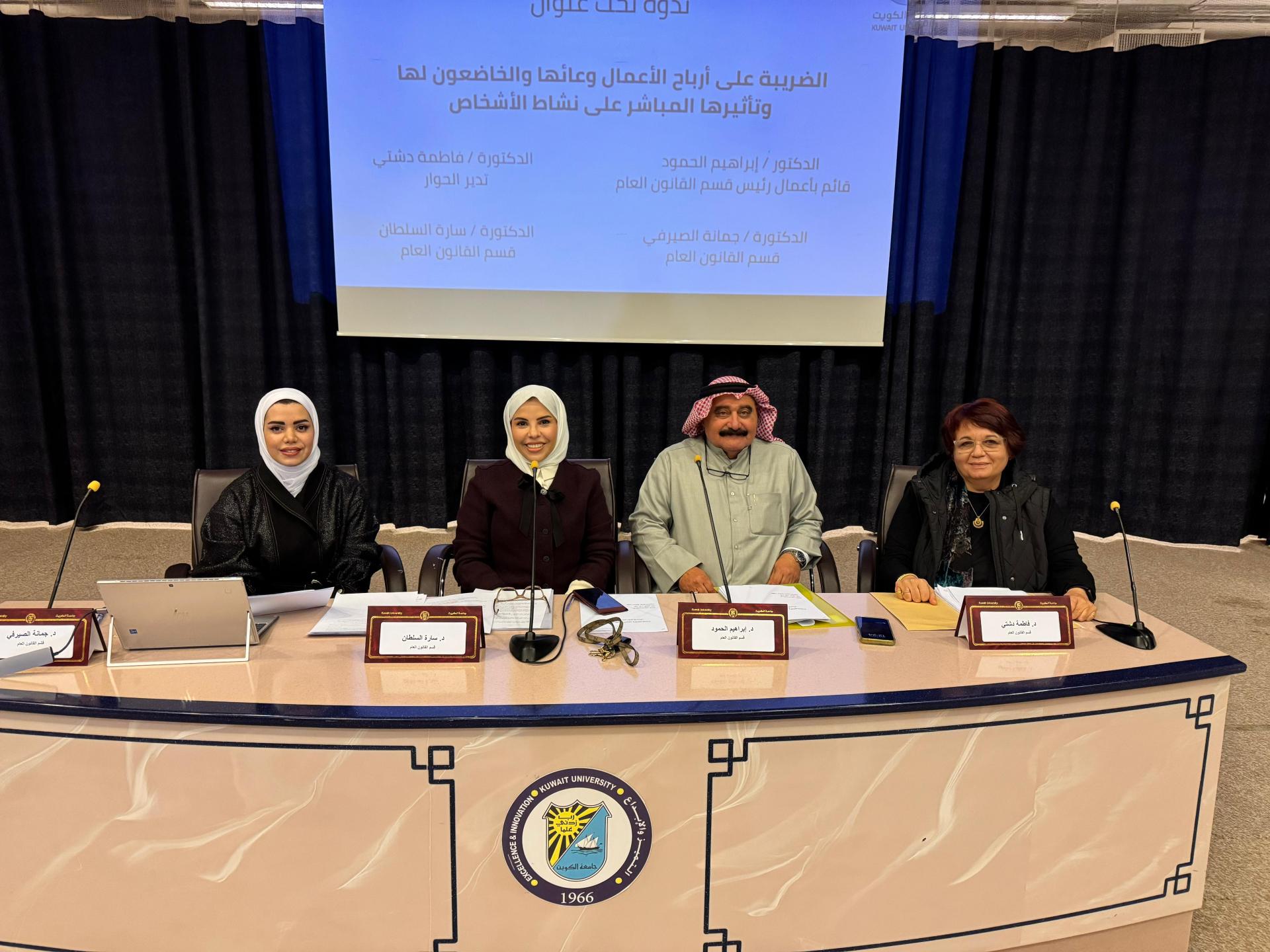 نظّم قسم القانون العام بكلية الحقوق في جامعة الكويت ندوة تحت عنوان “الضريبة على أرباح الأعمال: وعاؤها والخاضعون لها وتأثيرها المباشر على نشاط الأشخاص”، أدارتها الدكتورة فاطمة دشتي، وشارك فيها كل من القائم بأعمال رئيس قسم القانون العام الدكتور إبراهيم الحمود، والدكتورة سارة السلطان، والدكتورة جمانة الصيرفي، بحضور عدد من أعضاء هيئة التدريس وطلبة الكلية، وذلك على مسرح عثمان عبد الملك.