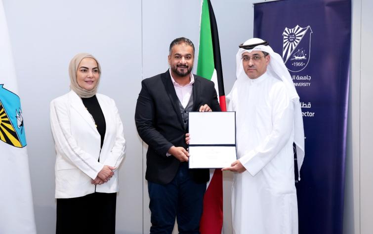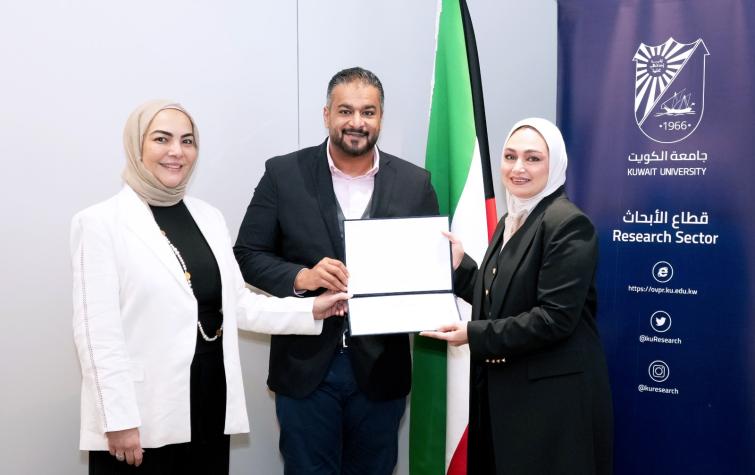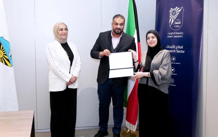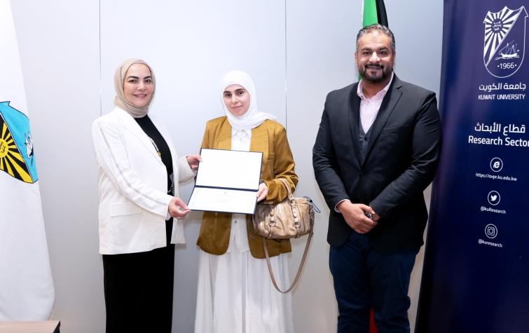 نظم مكتب نائب مدير الجامعة للأبحاث حفل تكريم الفائزين بجوائز الأبحاث العلمية للعام الأكاديمي2024/2025 وذلك بحضور القائم بأعمال نائب مدير الجامعة للأبحاث أ.د. مي داوود البدر، ومساعديها أ.د. نورية محمد الكندري مساعد نائب مدير الجامعة للتعاون البحثي الخارجي والاستشارات، ود. حنين شفيق الغبرا مساعد نائب مدير الجامعة لتمويل وتنفيذ الأبحاث، ود. ناصر فيصل التناك مساعد نائب مدير الجامعة لتحليل وتطوير الأبحاث، وحضور مميز من باحثي جامعة الكويت، وذلك يوم الاثنين الموافق 14/4/2025 في قاعة اجتماعات قطاع الأبحاث بمبنى الإدارة الجامعية في مدينة صباح السالم الجامعية.