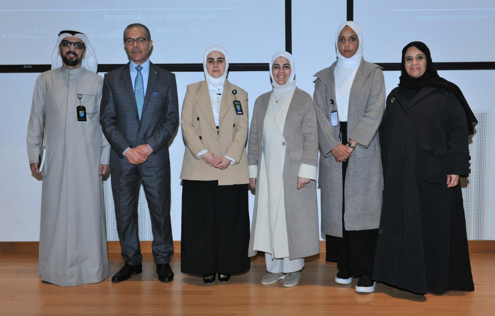 نظمت إدارة الدعم الفني في جامعة الكويت ورشة تحت عنوان "إطلاق نظام الخدمة التقنية الذاتية" قدمتها م. البتول حسين من إدارة الدعم الفني بهدف تطوير وتحسين الخدمات الجامعية، وذلك بحضور المدير الإداري لكلية العلوم الحياتية صالح المسلم ومدير إدارة الدعم الفني م. سندس أشكناني، في بهو المسرح الروماني- كلية العلوم الحياتية.