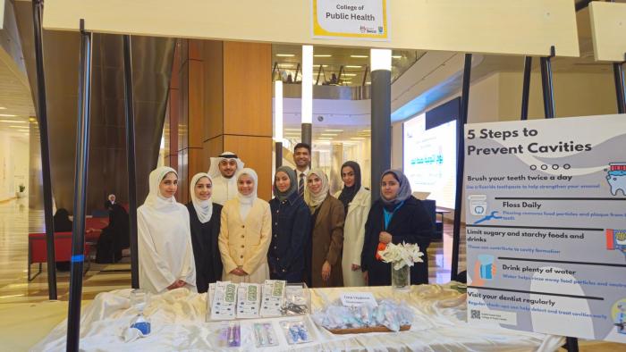تحت رعاية مدير جامعة الكويت أ.د. دينا مساعد الميلم، نظمت كلية طب الأسنان فعالية "الكويت تبتسم" احتفاءً بيوم التوعية بصحة الفم في بهو كلية العلوم الحياتية، وبمشاركة كلية الصحة العامة التي احتفت بدورها بيوم الصحة العالمي.