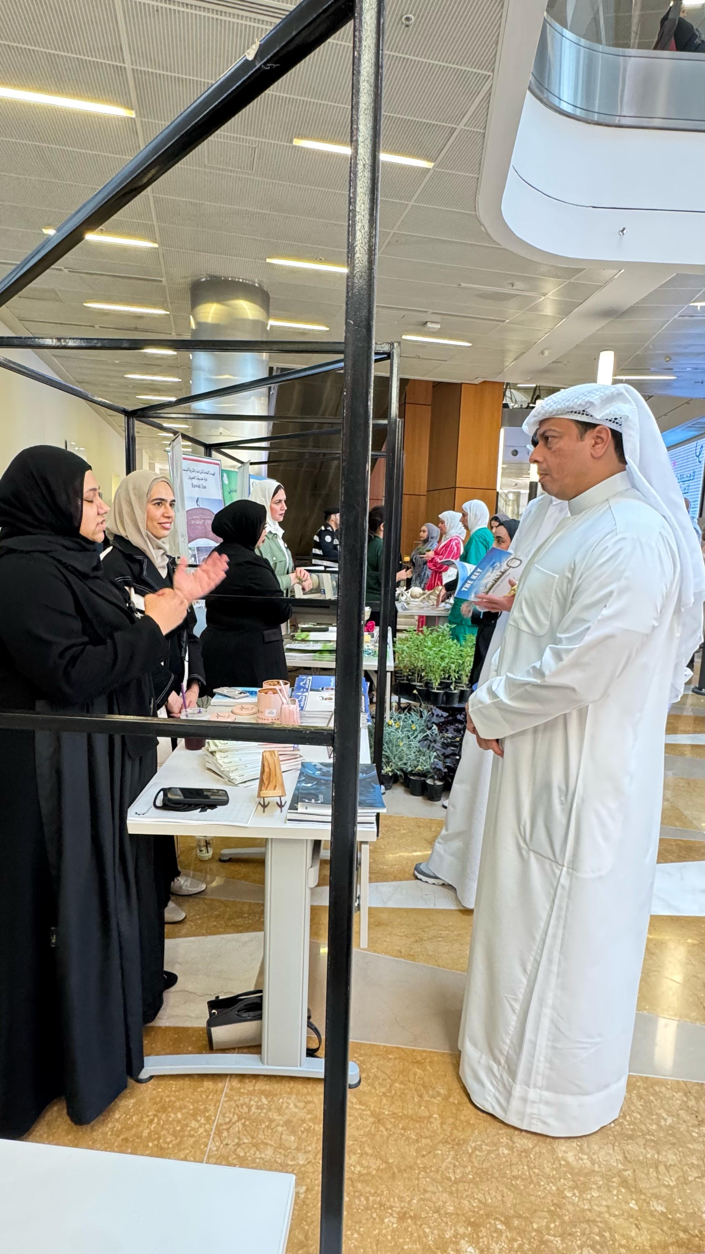 بداية افتتح أ.د. اللافي المعرض الخاص بهذه الفعالية والذي تشارك فيه عدة جهات منها الهيئة العامة للبيئة والهيئة العامة لشؤون الزراعة والثروة السمكية، ومعهد الكويت للأبحاث العلمية، ومرسم الكلية الحر برئاسة كل من أ. بتول الرشيد وأ. رغد العيد وشركة وفرة للاستشارات البيئية، وشركة الحلول المستدامة وغيرها.