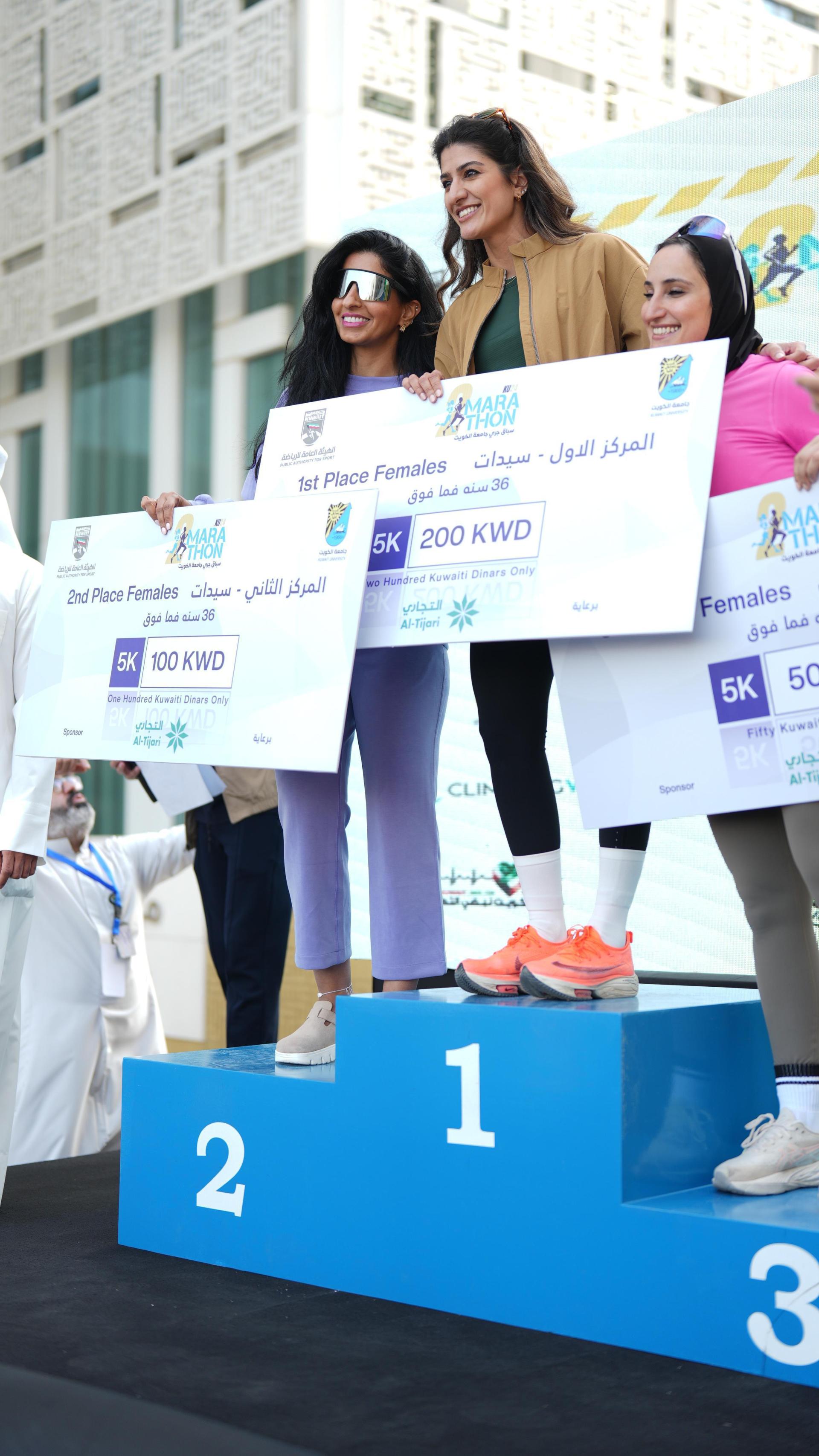 وأُجريت خلال الفعالية سحوبات على جوائز قيّمة، فيما بلغت قيمة الجوائز المقدمة للفائزين أكثر من 6000 دينار كويتي، برعاية البنك التجاري الكويتي ودعم من الهيئة العامة للرياضة، وتم توزيع ميداليات تقديرية على المشاركين، في أجواء احتفالية غمرت الحضور بروح المنافسة والفرح.