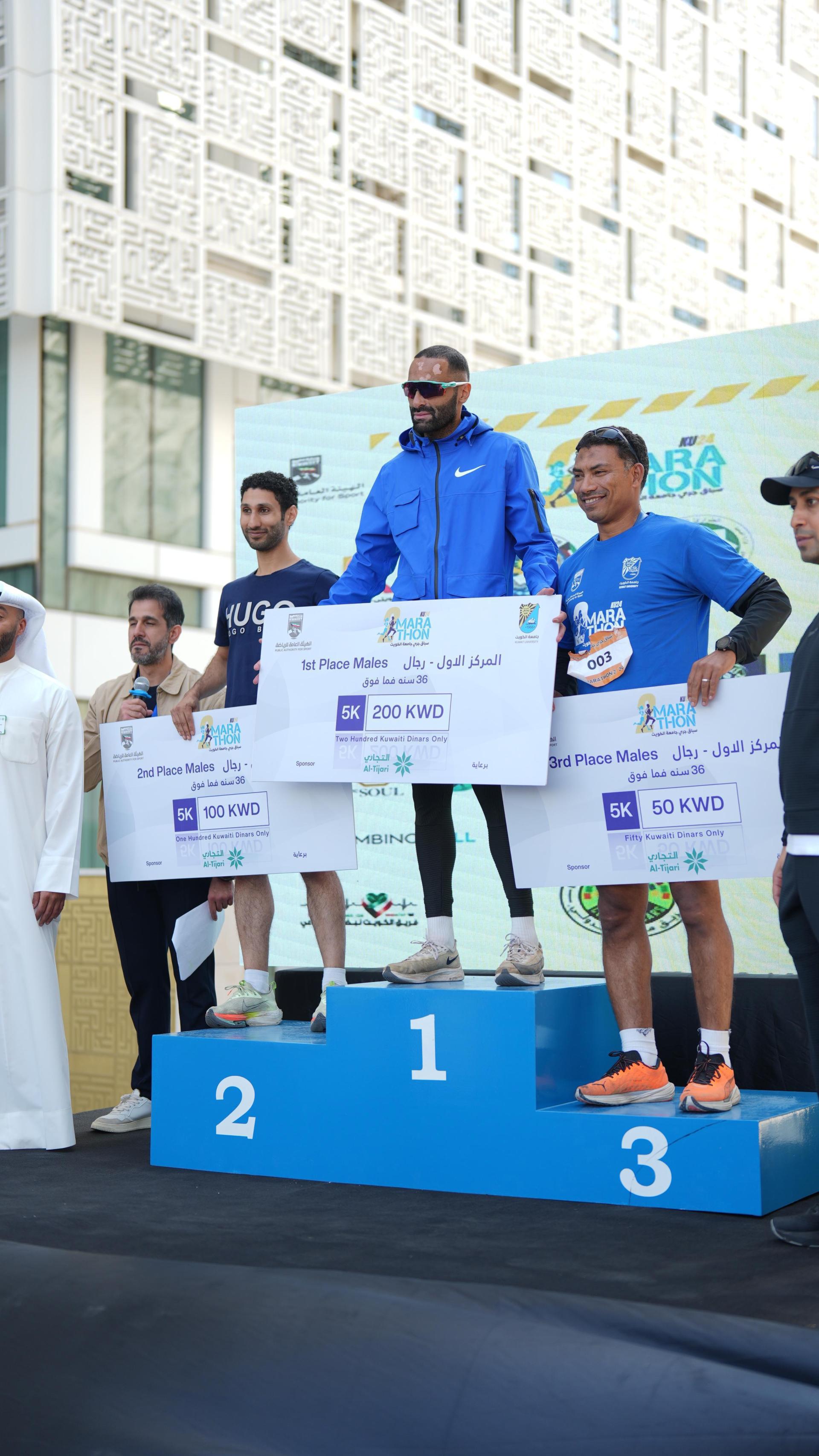 في أجواء رياضية احتفالية، وبرعاية كريمة من مدير جامعة الكويت بالإنابة الأستاذ الدكتور أسامة السعيد، نظّمت عمادة شؤون الطلبة النسخة الثانية من ماراثون جامعة الكويت للعام الجامعي 2025/2024 يوم السبت، الموافق 16 نوفمبر 2024، في مدينة صباح السالم الجامعية، بحضور ومشاركة تجاوزت 3000 متسابق ومتسابقة من مختلف الأعمار والفئات، سواء من داخل الجامعة أو خارجها، إلى جانب حضور مميز من عائلات المشاركين والجمهور الرياضي، بتنظيم من قِبَل إدارة الأنشطة الرياضية في عمادة شئون الطلبة، بالشراكة مع الهيئة العامة للرياضة وعدد من الجهات الداعمة، منها إدارة العلاقات العامة والإعلام وإدارة الأمن والسلامة، وأكاديمية سعد العبدالله للعلوم الأمنية، وشركة فيجينز، ونادي الطموح الرياضي للإعاقة الذهنية.
