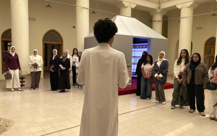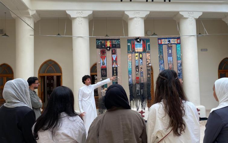 نظم مقرر "مقدمة في نظريات التصميم والنقد" تحت إشراف د. مي الخرافي زيارة ميدانية إلى معرض مبادرة السدو للفن والتصميم (2025 SADI)، المقام تحت عنوان "روابط الأسلاف" في بيت السدو.