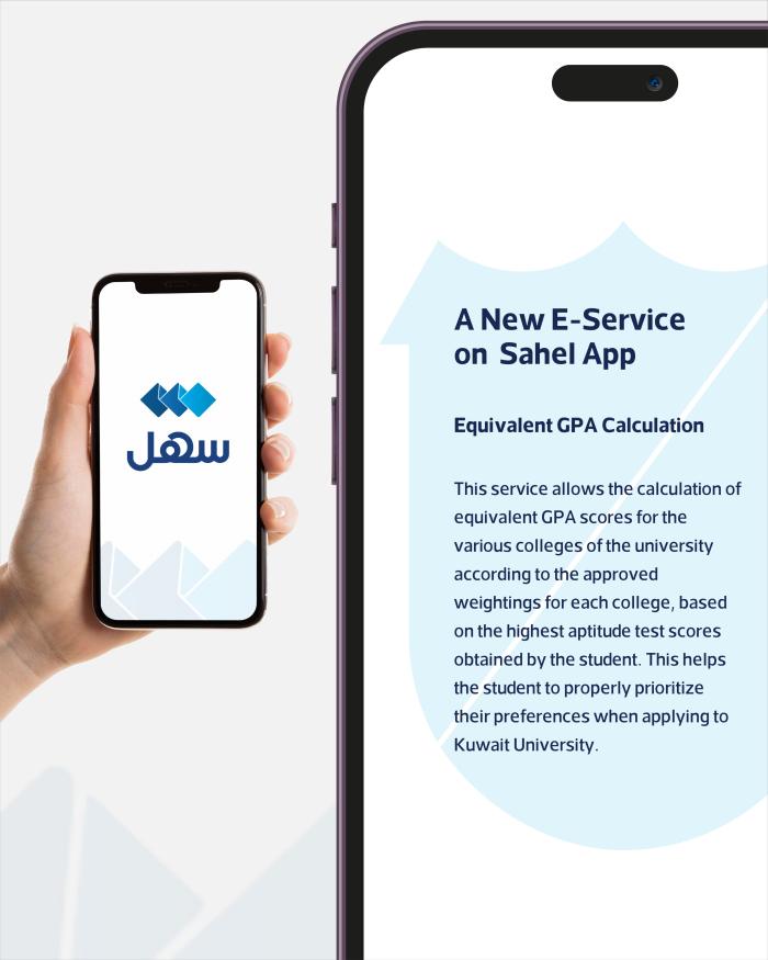 This service allows the calculation of equivalent GPA scores for the various colleges of the university according to the approved weightings for each college, based on the highest aptitude test scores obtained by the student. This helps the student to properly prioritize their preferences when applying to Kuwait University.