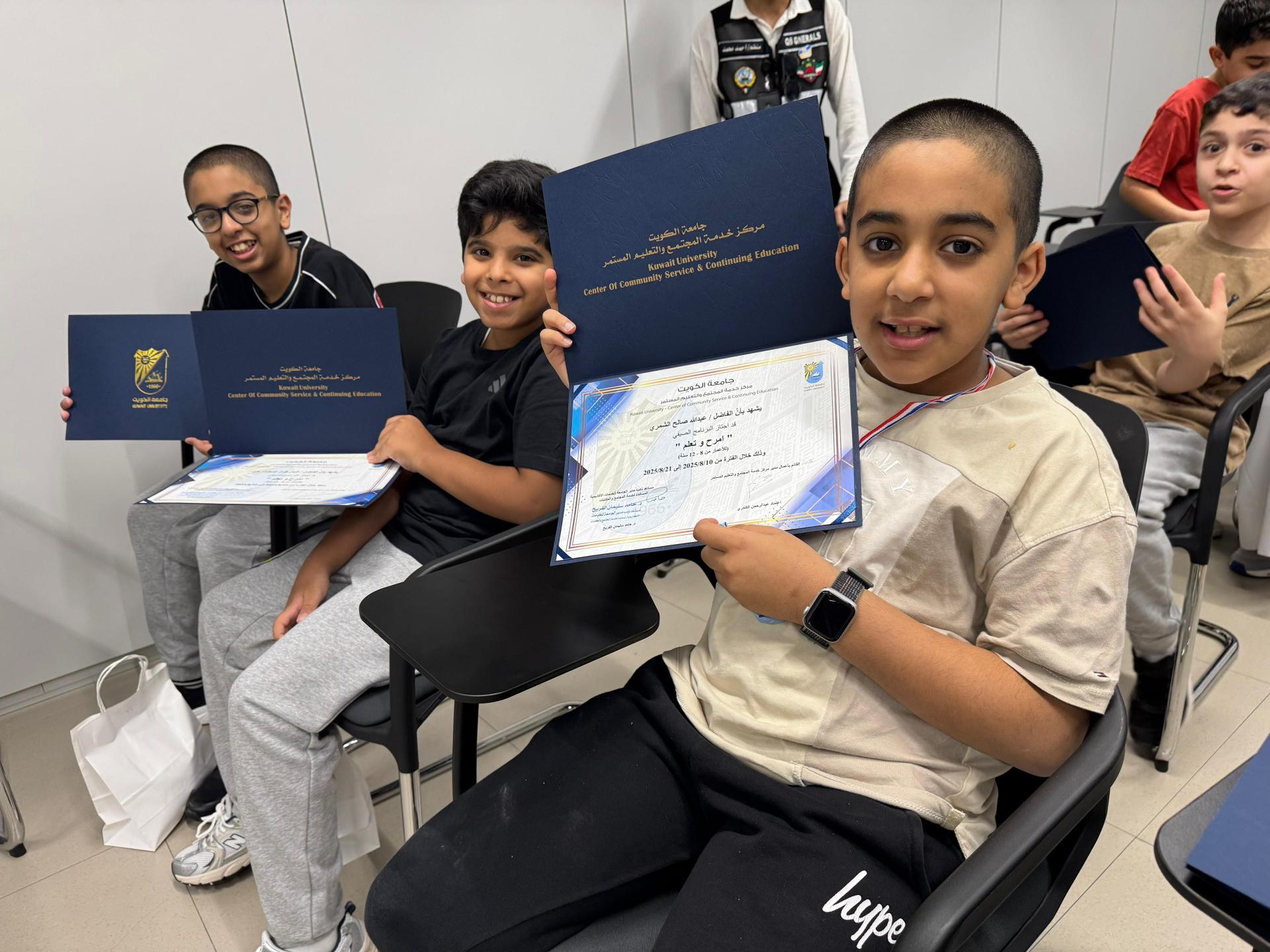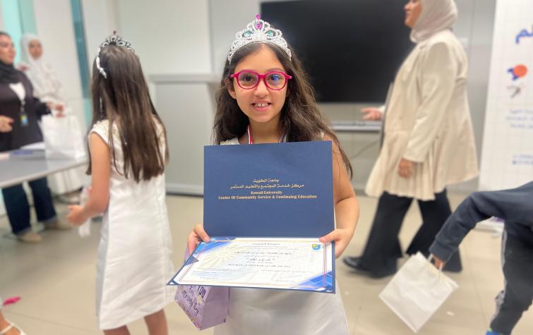 The Center for Community Service and Continuing Education at Kuwait University concluded its second summer program, Learn and Have Fun, targeting children aged 8 to 12 years old. The closing ceremony took place on Thursday, August 21, 2025, at Sabah Al-Salem University City, with the aim of enhancing children's skills and nurturing their creativity in a safe educational environment. The event was attended by the Acting Director of the Center for Community Service and Continuing Education, Ms. Munira Ibrahim Al-Baz, along with the training and volunteer teams from the Community Programs Division of the Center.