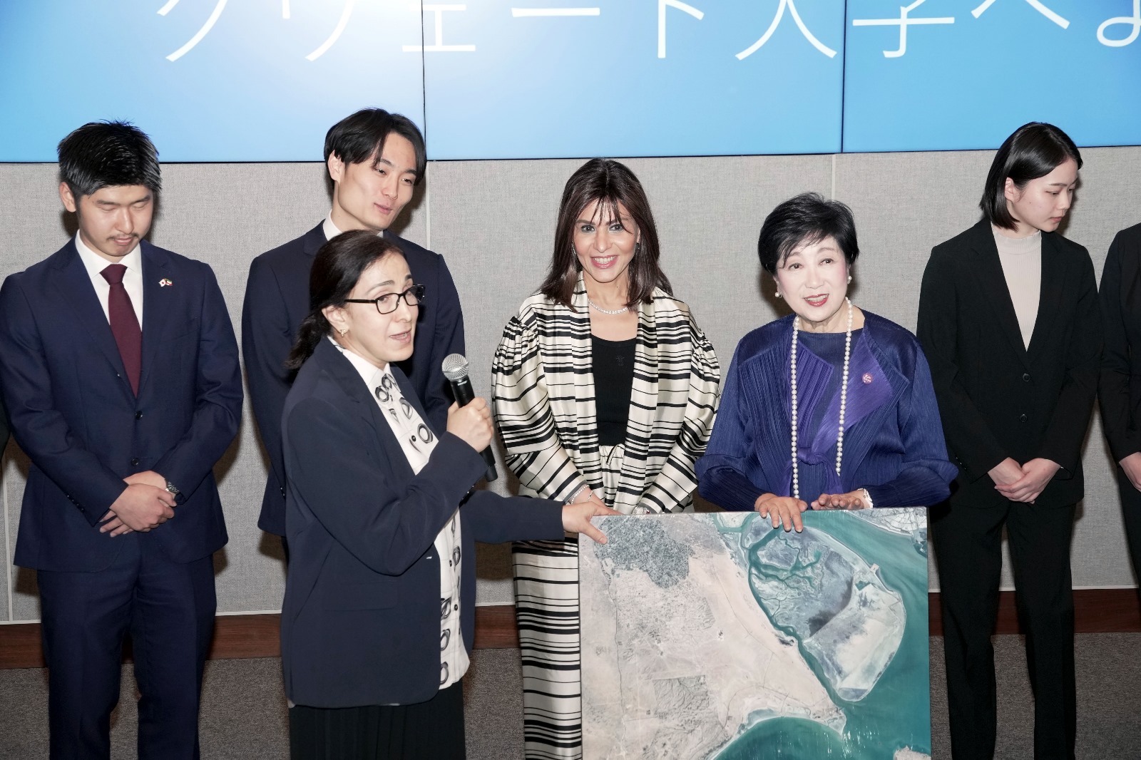 At the conclusion of the visit, Kuwait University presented a commemorative gift to the Governor of Tokyo; a photograph of the first image captured by the “KuwaitSat-1” satellite, developed by a team from Kuwait University, in appreciation of her visit and her support for environmental initiatives and scientific innovation.