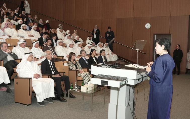 Following the lecture, Ms. Koike met with a group of Japanese students studying at Kuwait University. She expressed her pride in their educational experience in Kuwait and commended the university for fostering an academic environment that encourages cultural exchange and strengthens the spirit of cooperation among nations.