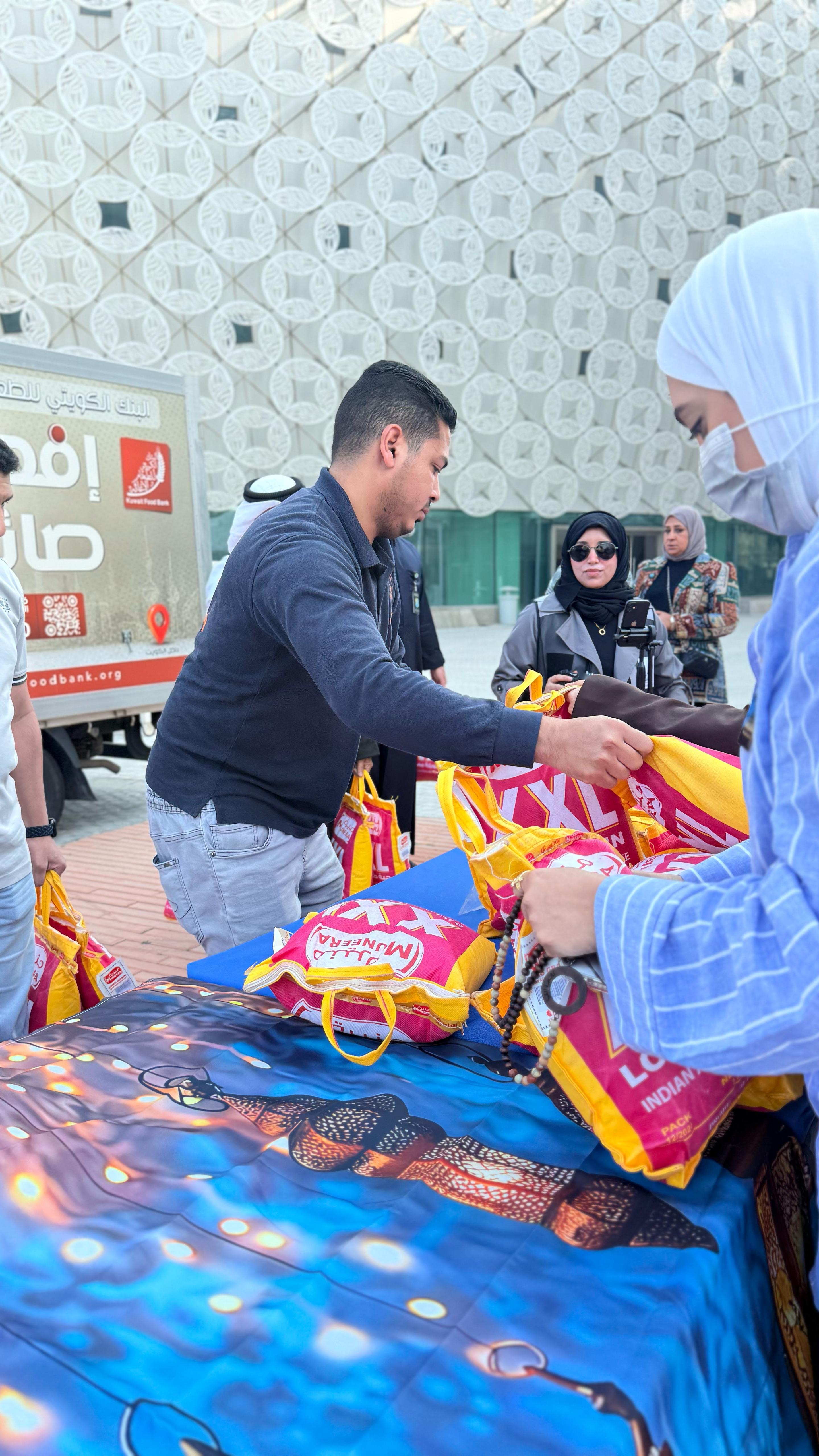 Kuwait University, represented by the Volunteering and Scouting Activities Department within the Deanship of Student Affairs, organized a special Ramadan initiative in collaboration with the Kuwait Food and Relief Bank, aiming to distribute 300 food baskets to university workers. The event took place on Wednesday, March 12, 2025, at 2:30 PM next to the Cultural Center Building in the Al-Shadadiya campus.