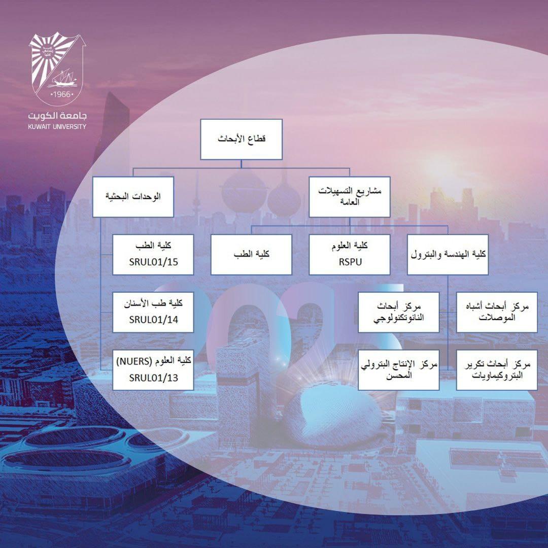 The Research Sector at Kuwait University seeks to achieve a qualitative shift in the research infrastructure to provide an ideal environment for researchers to conduct high-quality research. Within this framework, grants have been provided for general facilities to support research projects and provide advanced laboratories and high-tech devices in various colleges, while providing them with trained personnel and the necessary technical support to operate and maintain these devices. The basic research facilities in all colleges have also been developed and expanded, with the aim of facilitating advanced experiments, accurate analysis and in-depth scientific studies in various fields such as nanotechnology, proteomics, genomics, cell and spectroscopic biology, and other advanced fields.