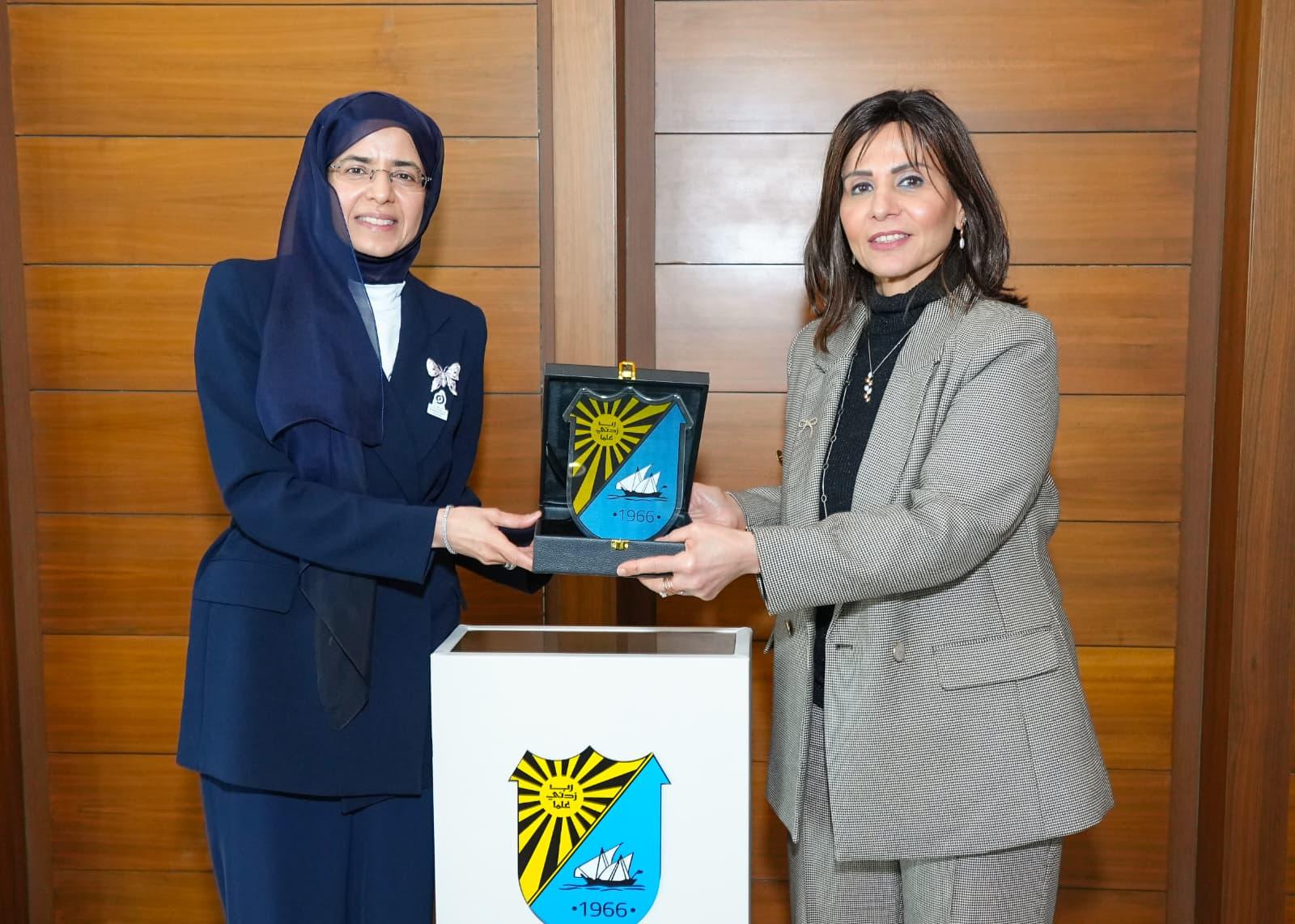 The President of Kuwait University, Prof. Dina Musaed Al-Mailem, received the Acting President of Abdullah Al-Salem University, Prof. Mona Sulaiman Al-Ahmed, in the presence of a number of academic and administrative leaders from both Kuwait University and Abdullah Al-Salem University. The meeting was held at Sabah Al-Salem University City on Thursday, January 29.