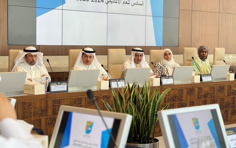The College of Graduate Studies held its sixth council meeting for the academic year 2024–2025. The meeting was attended by Acting Dean of The College of Graduate Studies, Prof. Ahmad Al-Mekhyal; Vice Dean for Academic Affairs, Prof. Meshari Al-Eifan; Acting Vice Dean for Planning and Development, Dr. Mohammad Raef Al-Samawi; along with heads of academic departments from various colleges. The meeting took place in the University Council Meeting Room at Sabah Al-Salem University City.