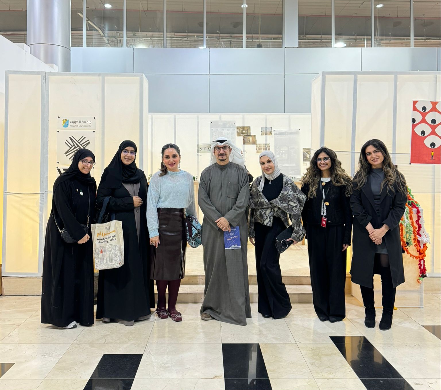 Dr. Al-Momen and Dr. Dashti concluded their speech with sincere thanks to everyone who contributed to the success of the College of Architecture's participation, including influential supporters such as Kuwait University, the exhibition management, local designers, faculty members and students for their good representation of the College of Architecture and Kuwait University in a bright image.