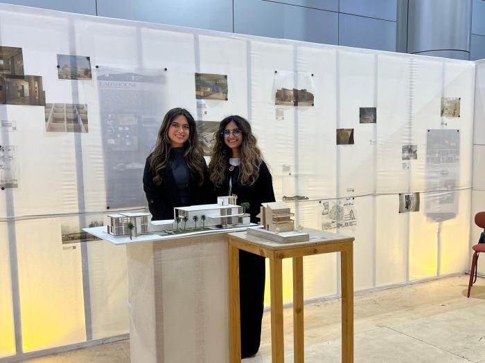 Regarding the content and nature of the participation, Dr. Al-Momen explained that the College of Architecture's pavilion included student architectural projects, starting from urban planning and designing the site surrounding the building, ending with the design of small rooms and the type of materials used.