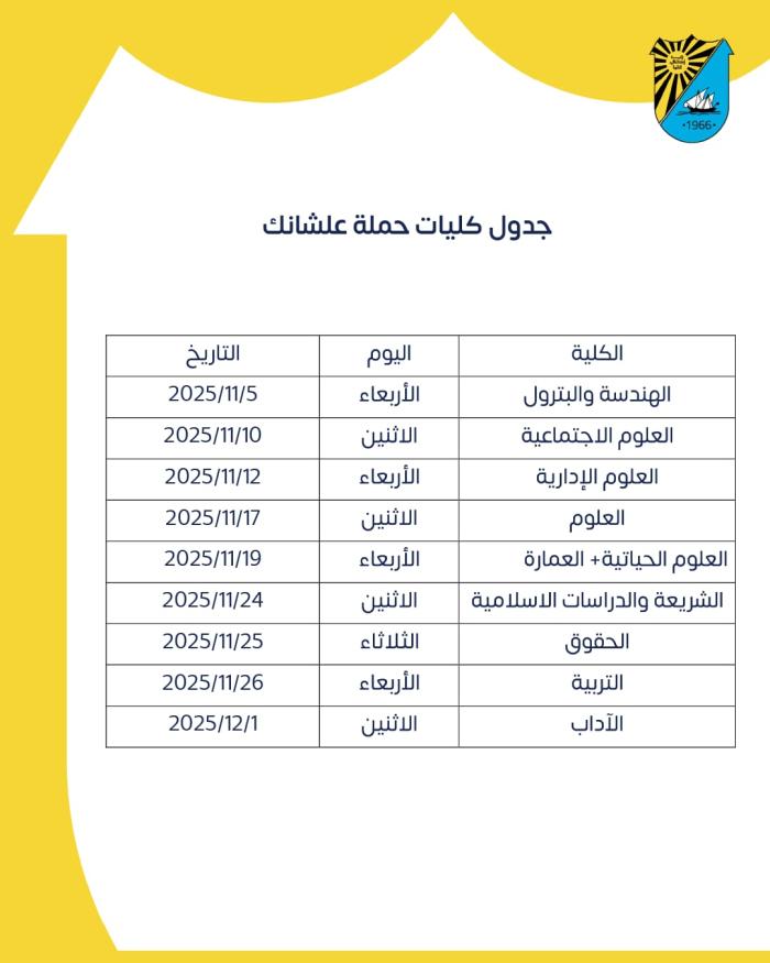 The campaign will also include a workshop for staff of Guidance and Counseling Offices in the Colleges, as well as sessions dedicated to answering students’ inquiries, according to a published schedule that ensures the presence of Admission and Registration staff in the various colleges.