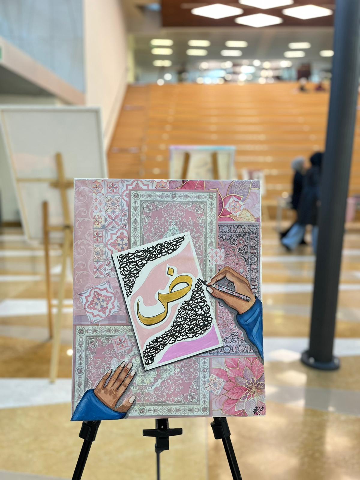 The Art Department within the Cultural and Artistic Activities Administration of the Deanship of Student Affairs at Kuwait University hosted several student activities, including the “Calligraphy” exhibition in collaboration with art studios at the College of Science and the college of Engineering, and Petroleum, supervised by the art coordinators Ms. Huda Baqer and Ms. Bedour Al-Rashidi, in the presence of Acting Director of Cultural and Artistic Activities Administration Ms. Naifah Al-Shammari and Head of the Art Department Mr. Bader Al-Mutairi. Another exhibition titled “Hobby” was held at the College of Life Sciences under the supervision of Ms. Raghad Al-Eid and the attendance of Acting Vice Dean for Student Activities Dr. Salem Matroud Al-Shammari.