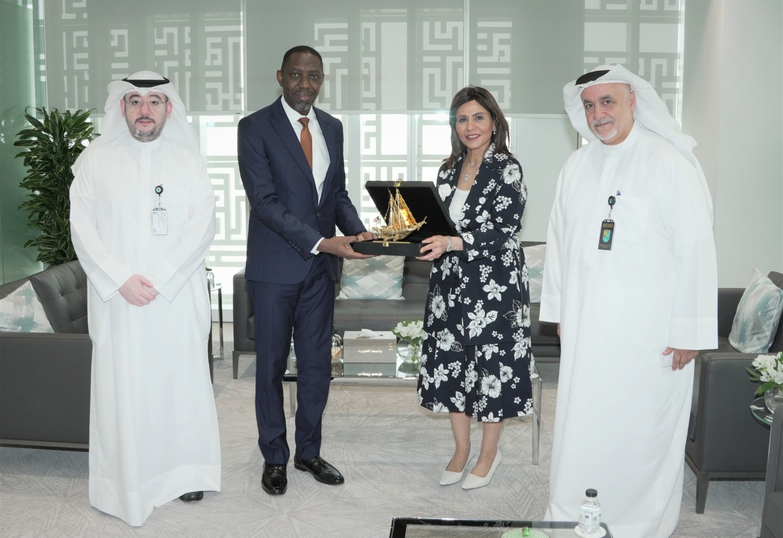 At the conclusion of the visit, the President of Kuwait University honored His Excellency the Ambassador of the Republic of Ghana to Kuwait, Mr. Mohammed Habib Idris, in recognition of his efforts and role in enhancing relations between the two countries. She also expressed hope for the growth and strengthening of cooperation between Kuwait University and Ghanaian universities in the near future.