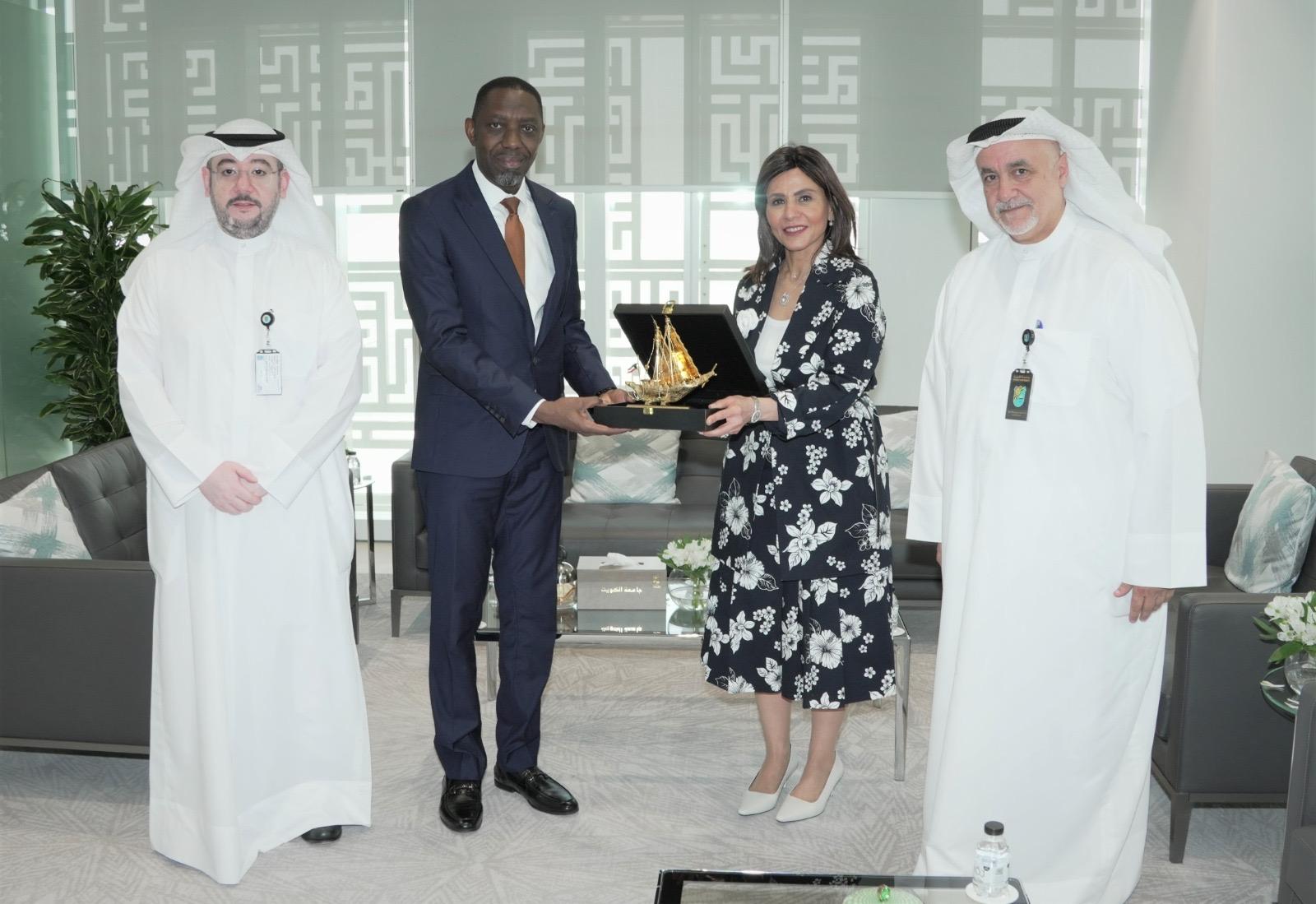 Professor Dina Musaed Al-Mailem, President of Kuwait University, received His Excellency Mr. Mohammed Habib Idris, Ambassador of the Republic of Ghana to the State of Kuwait. The meeting was attended by Acting Secretary-General of the University Dr. Bader Ahmad Al-Jasser Al-Rajhi, and Acting Vice President for Academic Affairs Professor Mohammed Ali Al-Mulla, at Sabah Al-Salem University City.