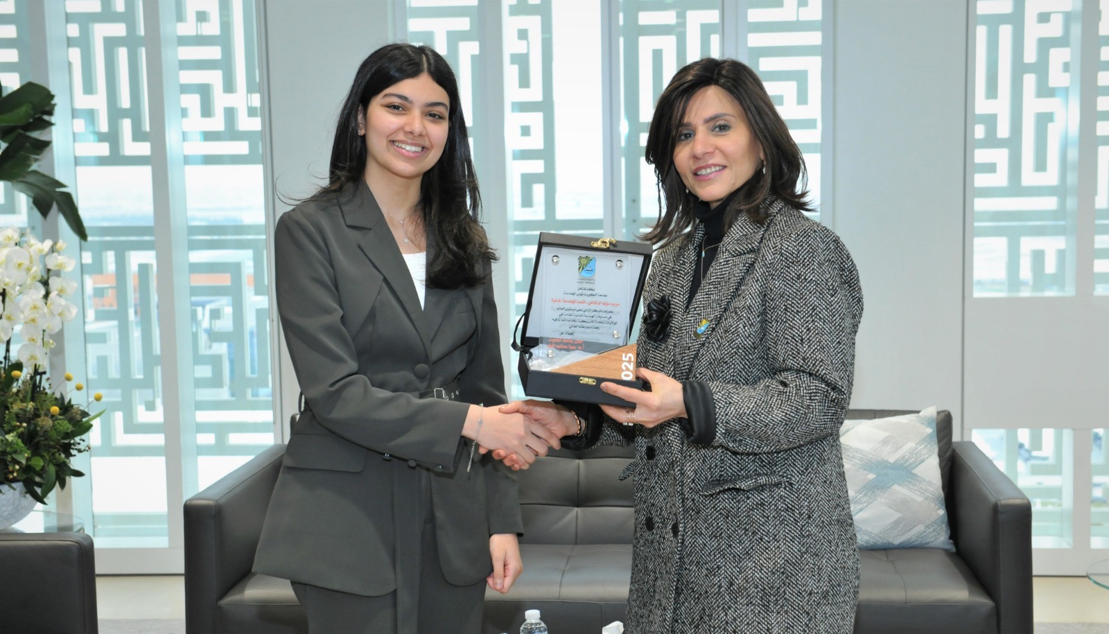 In recognition of Kuwait University's role in academically preparing promising youth and creating a supportive and nurturing environment for its students, the President of Kuwait University, Prof. Dina M. Al-Mailem, welcomed the graduate from the College of Engineering and Petroleum, Engineer Maryam Moayed Al-Rifai. She was selected as one of the top ten students in civil engineering in the world by the American Society of Civil Engineers in the United States. The honor was presented on Sunday, February 16, 2025, at the university's administration building, as a tribute to her scientific and academic efforts, which led to this outstanding achievement, making her a source of pride for her country and her generation, and an excellent representative of Kuwait at the international level.