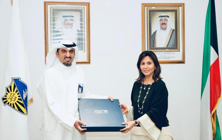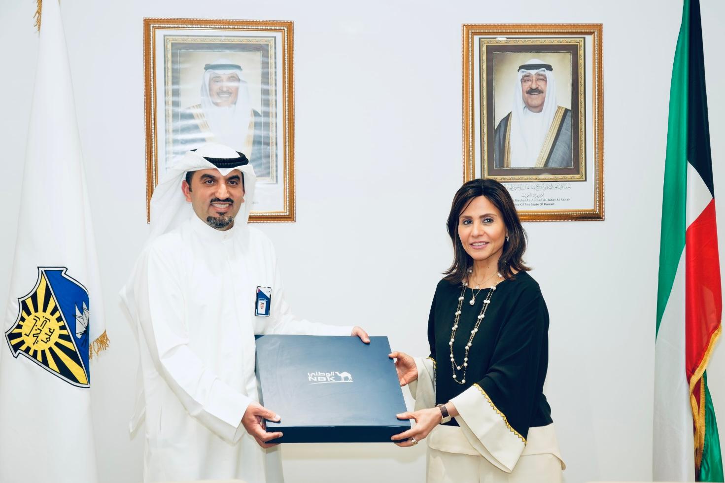 On Sunday, May 25, 2025, Prof. Dina Musaed Al-Mailem, President of Kuwait University, received a delegation from the National Bank of Kuwait (NBK) at Sabah Al-Salem University City. The delegation was led by Mr. Mohammad Al-Othman, Chief Executive Officer of Consumer and Digital Banking Services; Mr. Hisham Al-Nusif, General Manager of Personal Banking; Ms. Ghadeer Al-Awadhi, Assistant General Manager; Ms. Amal Al-Duwaisan, Head of Weyay Bank; Mr. Mohammad Al-Wazzan, Director of Sales Force Management; and Mr. Salem Al-Rasheedi, Relationship Officer for NBK and Weyay Bank. The visit aimed to strengthen the strategic partnership between NBK and Kuwait University.