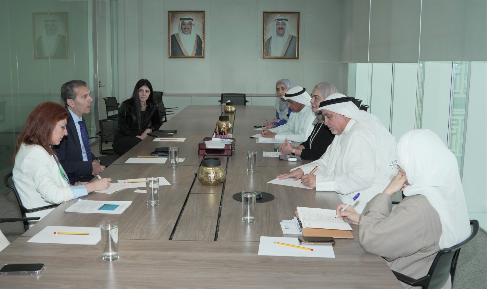 The meeting was also attended by Prof. Mai Dawoud Al-Bader, Acting Vice President for Research; Dr. Haneen Shafiq Al-Ghabra, Assistant Vice President for Research Funding and Implementation; Dr. Hamed Suleiman Al-Furaih, Assistant Vice President for Academic Support Services for Community Engagement and Libraries; and Ms. Etemad Al-Kandari, Director of the E-Learning Center under the Office of the Vice President for Academic Support Services and Information Technology Sector at Kuwait University.