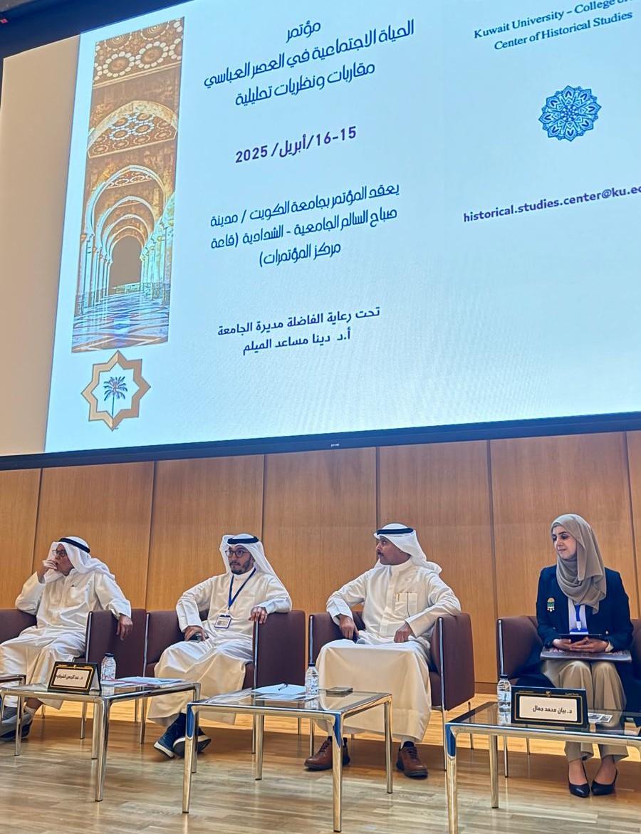 Dr. Khaled Al-Bateni, Director of the Center for Historical Studies at the College of Arts, Kuwait University, inaugurated the Fourth International Conference titled “Social Life in the Abbasid Era: Analytical Approaches and Theoretical Perspectives”. The conference took place in the University’s Conference Center Hall on Tuesday and Wednesday, April 15–16, 2025, from 9:00 AM to 2:00 PM, with the participation of a distinguished group of academics and researchers from Kuwait and abroad.