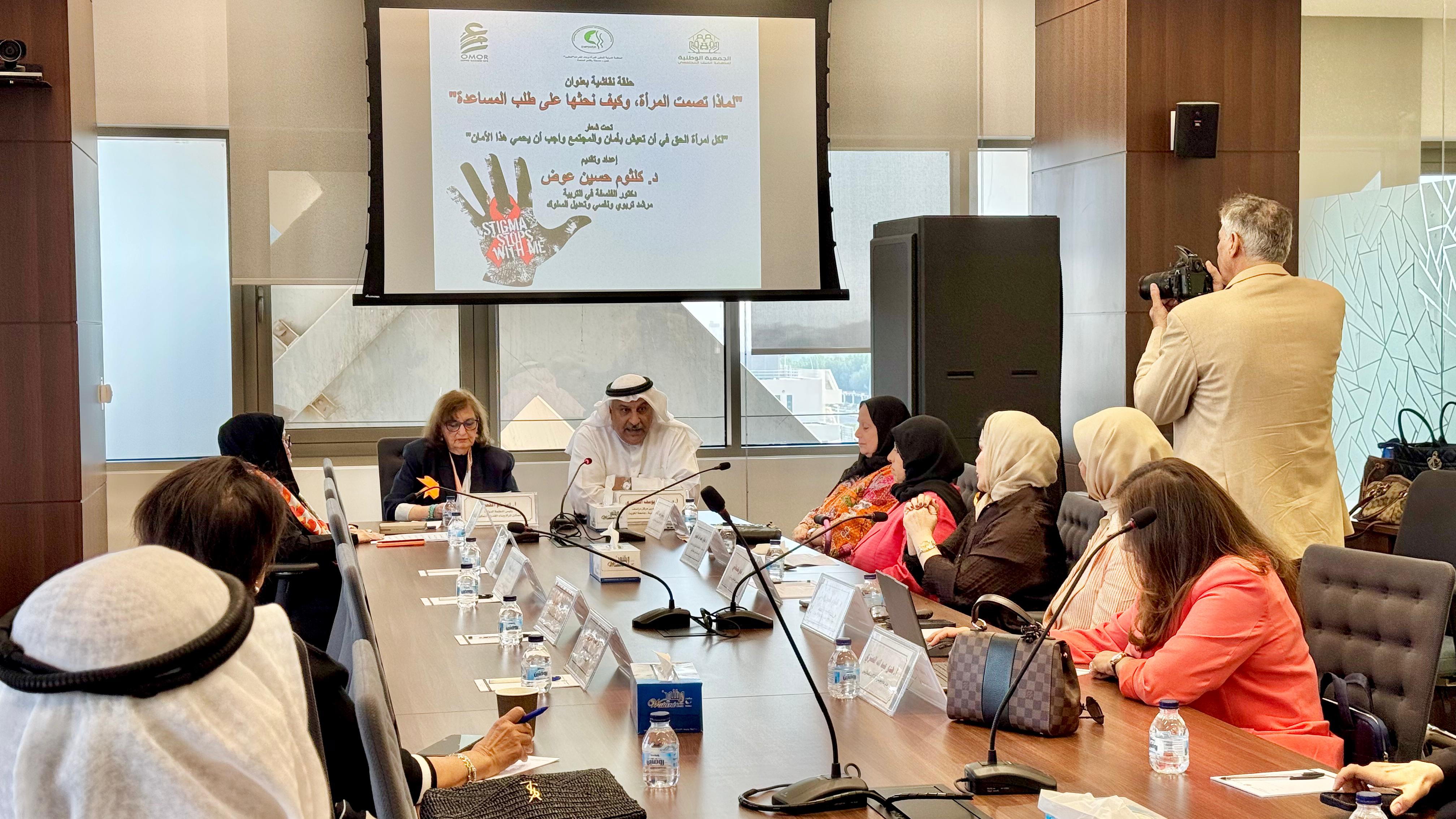 Prof. Al-Kandari opened the discussion by emphasizing the Center’s commitment to addressing pressing social issues, particularly violence against women. He highlighted that the session aligns with Kuwait University’s dedication to addressing socially relevant topics open for discussion and practical application, welcoming Ms. Ibtisam Al-Qaoud, Head of the International Organization for Women Empowerment and Capacity Building Tamkeen, who moderated the session.