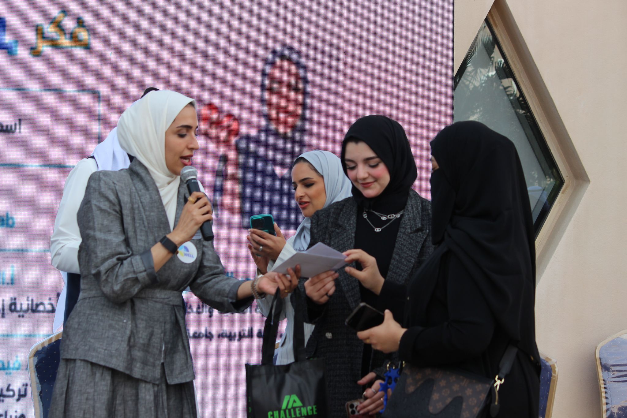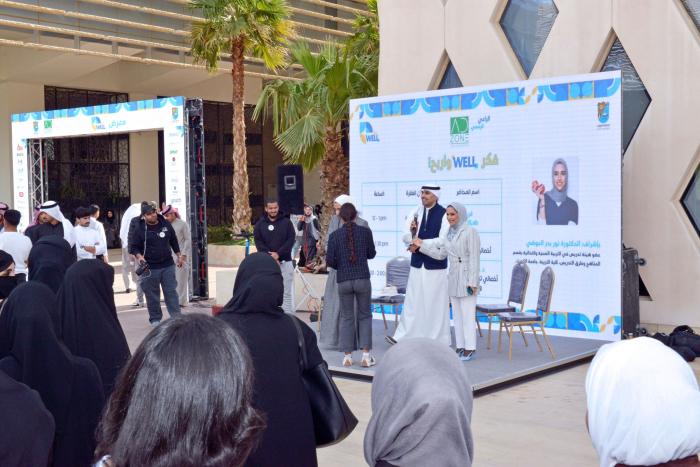 The event also included an inquiries segment and competitions presented by Dr. Nour Al-Awadhi, a faculty member at the College of Education. The event also hosted Dr. Ahmed Lairi and specialist Amna Hussein Ismail from the NUTRILAB Nutrition Center, social specialist and trainer, Ms. Alaa Al-Nassar, and Dr. Faisal Al-Rashidi from Bayan Dental Center, where they presented the “Think WELL and Win” segment, which witnessed great interaction from the audience