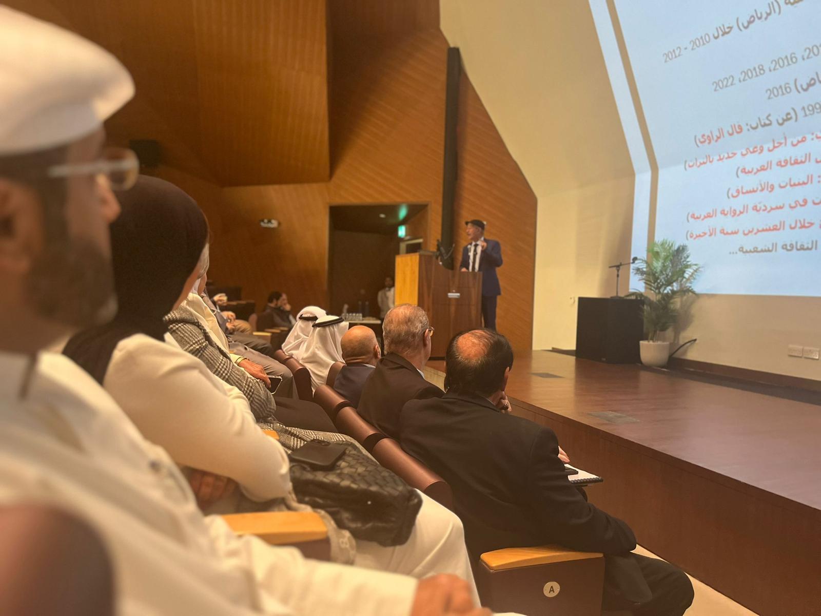In the College of Arts, Prof. Saeed Abdulqader Yaqteen, winner of the Kuwait Prize for 2022 in the field of humanities, arts, and literature, gave a lecture entitled "Towards a Cognitive Theory for the Study of Literature".