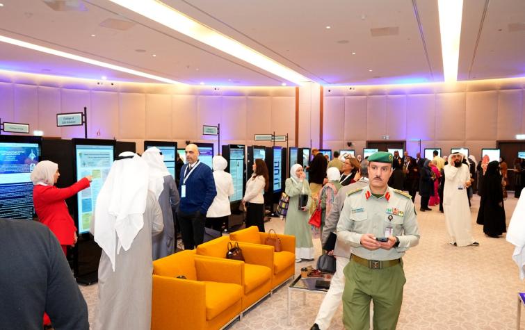 On the sidelines of the conference, a Scientific Poster Exhibition was organized, featuring (430) scientific posters addressing various contemporary issues with scientific, social, and national dimensions. The posters were presented by Kuwait University faculty members, supporting academic staff, and graduate students. The exhibition also witnessed the participation of several local research institutions linked to Kuwait University through cooperation agreements, including: the Kuwait Foundation for the Advancement of Sciences, the Kuwait Institute for Scientific Research, Kuwait Oil Company, the Public Authority for Applied Education and Training, Saad Al-Abdullah Academy for Security Sciences, and Abdullah Al-Salem University.