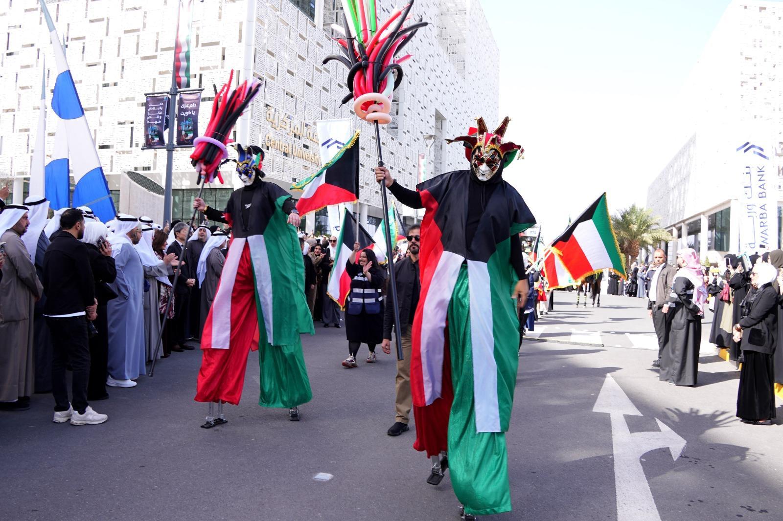 The celebration concluded with a grand student national parade in which Kuwait University students participated, expressing their joy, pride, and deep devotion to the beloved homeland.