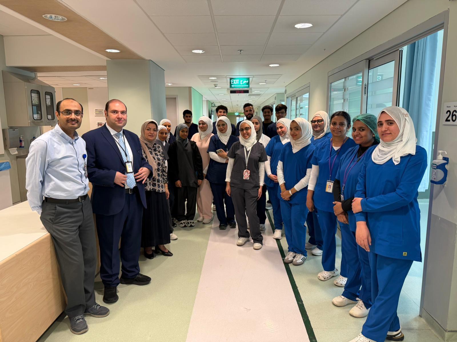 On this occasion, Prof. Al-Fadhli expressed her sincere appreciation to the management of Amiri Hospital, and her deep gratitude to Dr. Ali Al-Haddad, Clinical Training Supervisor at the hospital, for the warm welcome and productive cooperation between the academic and medical sectors. She emphasized that such collaboration represents a significant step in bridging academic learning with practical application.