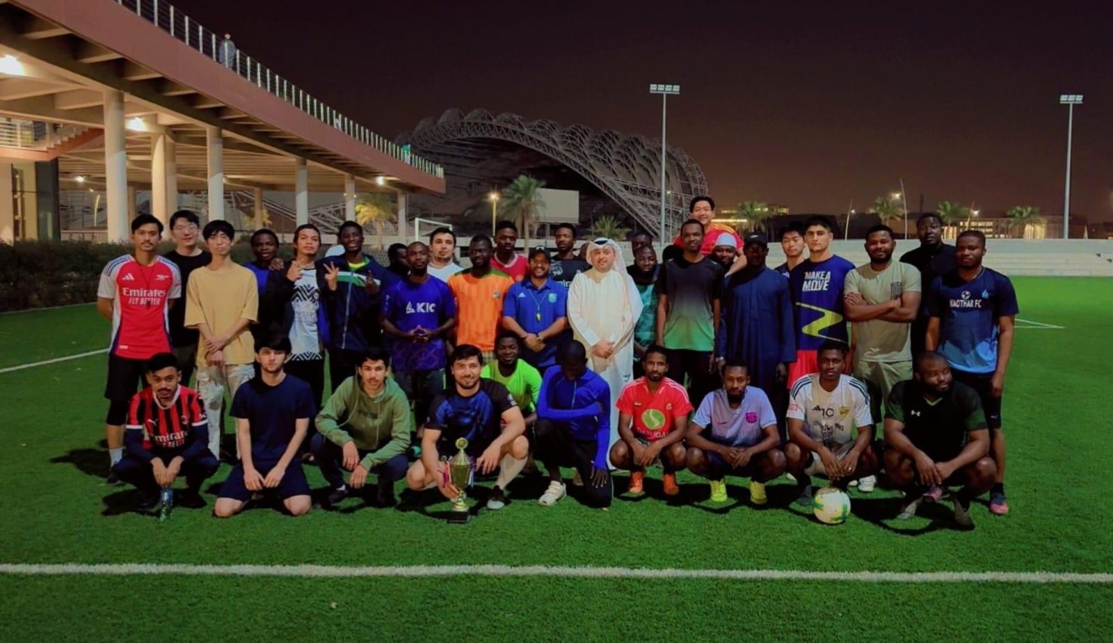 Under the patronage of the Acting Dean of Student Affairs, Prof. Jasem Al-Hamdan, the Student Activities Section of the Department of Student Housing and International Students Affairs organized a football activity with the participation of a large number of students residing in university housing. The event was attended by the Director of the Department of Student Housing and International Student Affairs, Mr. Faleh Al-Masoud; the Supervisor of the Department, Mr. Nabil Al-Mufreh; and the Head of the Student Housing Section, Mr. Mubarak Al-Enezi. The activity was supervised by the Head of the Student Activities Section, Mr. Ibrahim Al-Shehab, along with Mr. Rakan Al-Matar from the same section. The event took place on Saturday evening, 6 December 2025, at the football field of Sabah Al-Salem University City.