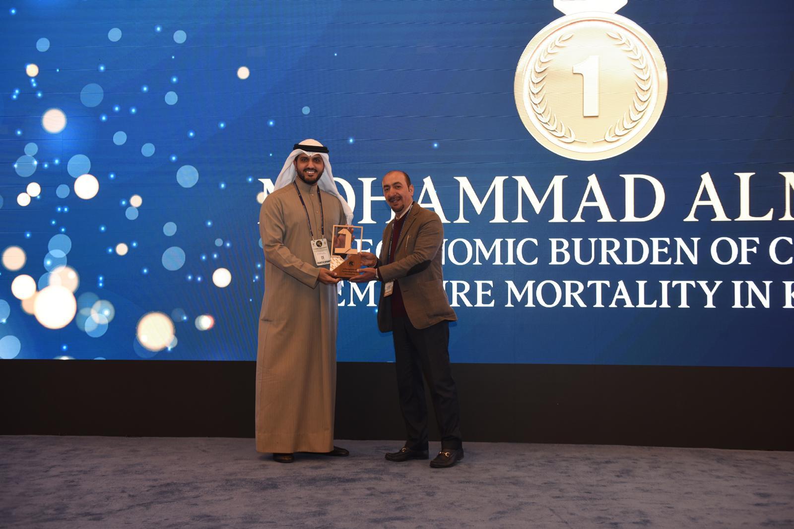 First place was awarded to Assistant Lecturer Mr. Mohammed Al-Mari for his research entitled “The Economic Burden of COVID-19 Premature Mortality in Kuwait.” Second and third places were jointly shared by Assistant Professor Saleh Al-Sarhan and Mr. Mohammed Al-Mari for two collaborative studies entitled “Predictors of Hospitalization Costs Due to COVID-19 in Kuwait: Evidence from Real-World Data,” and “Are Regions Equal in Economic Severity? A Spatiotemporal Analysis of Quarantine Burden and Economic Losses in Kuwait.”