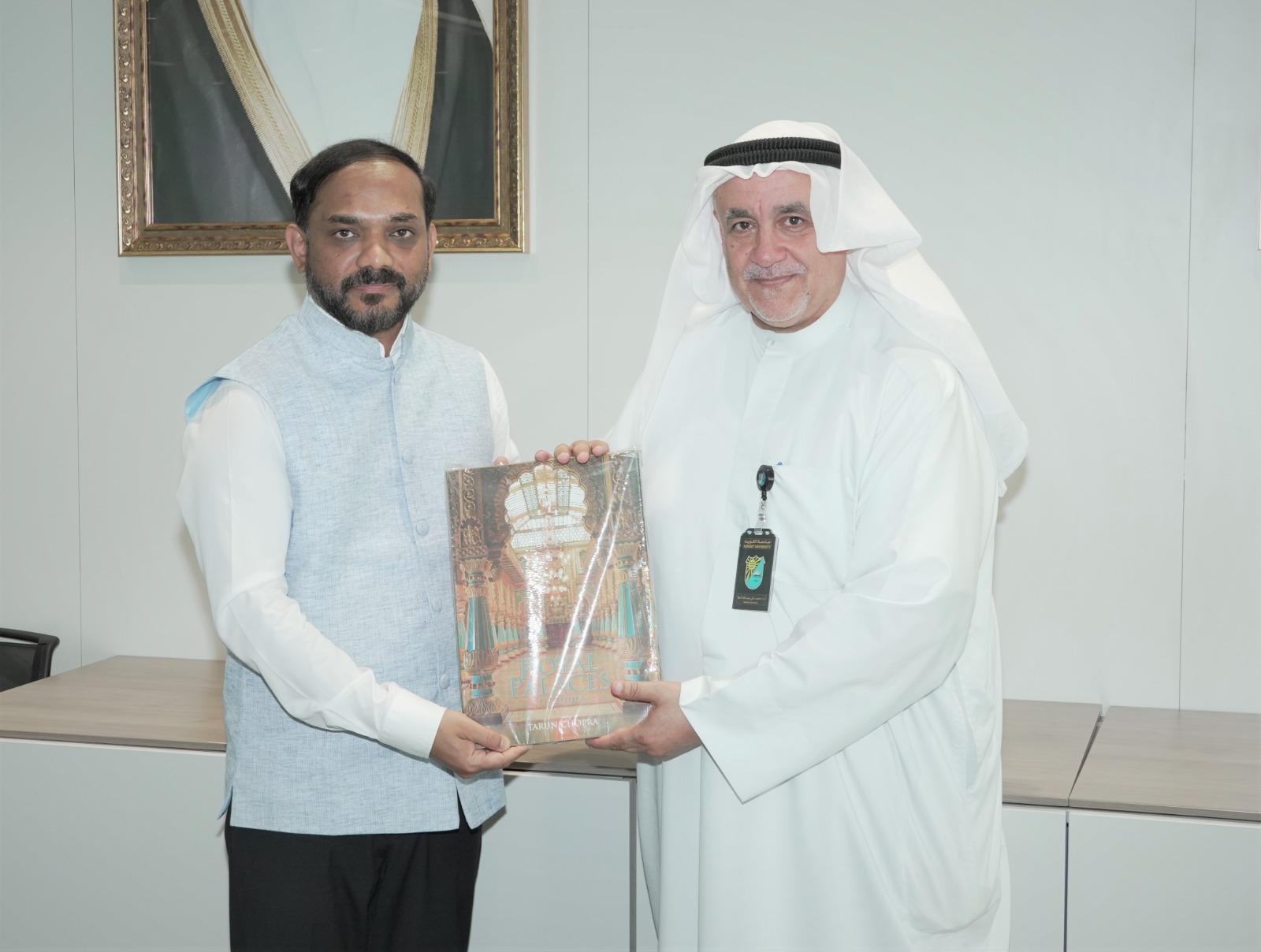 The visit served as a platform for exchanging ideas on potential avenues for academic and cultural collaboration, including the hosting of students and researchers at Kuwait University. Mr. Sanjay voiced a desire to increase academic seats in Islamic studies, as well as in core scientific fields such as medicine and engineering in the future. Prof. Al-Mulla also highlighted the contribution of Indian companies in developing Kuwait’s infrastructure, which opened the door to exploring further coordination and research collaboration in areas of mutual interest.