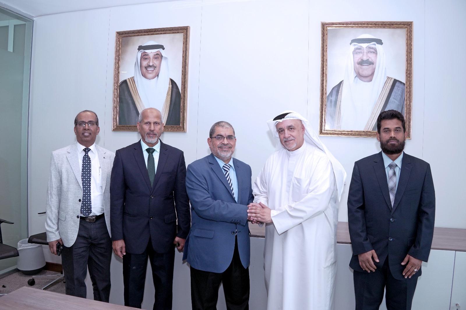 Prof. Mohammed Ali Al-Mulla, Acting Vice President for Academic Affairs and Acting Vice President for Academic Support Services at Kuwait University, welcomed a delegation from Hadhramout University — Republic of Yemen — comprising Prof. Mohammed Saeed Khanbash, President of Hadhramout University, Prof. Abdullah Alawi Aided, Secretary-General, and Mr. Hussein Abdullah Basaleeb, Office Director of the University President.
